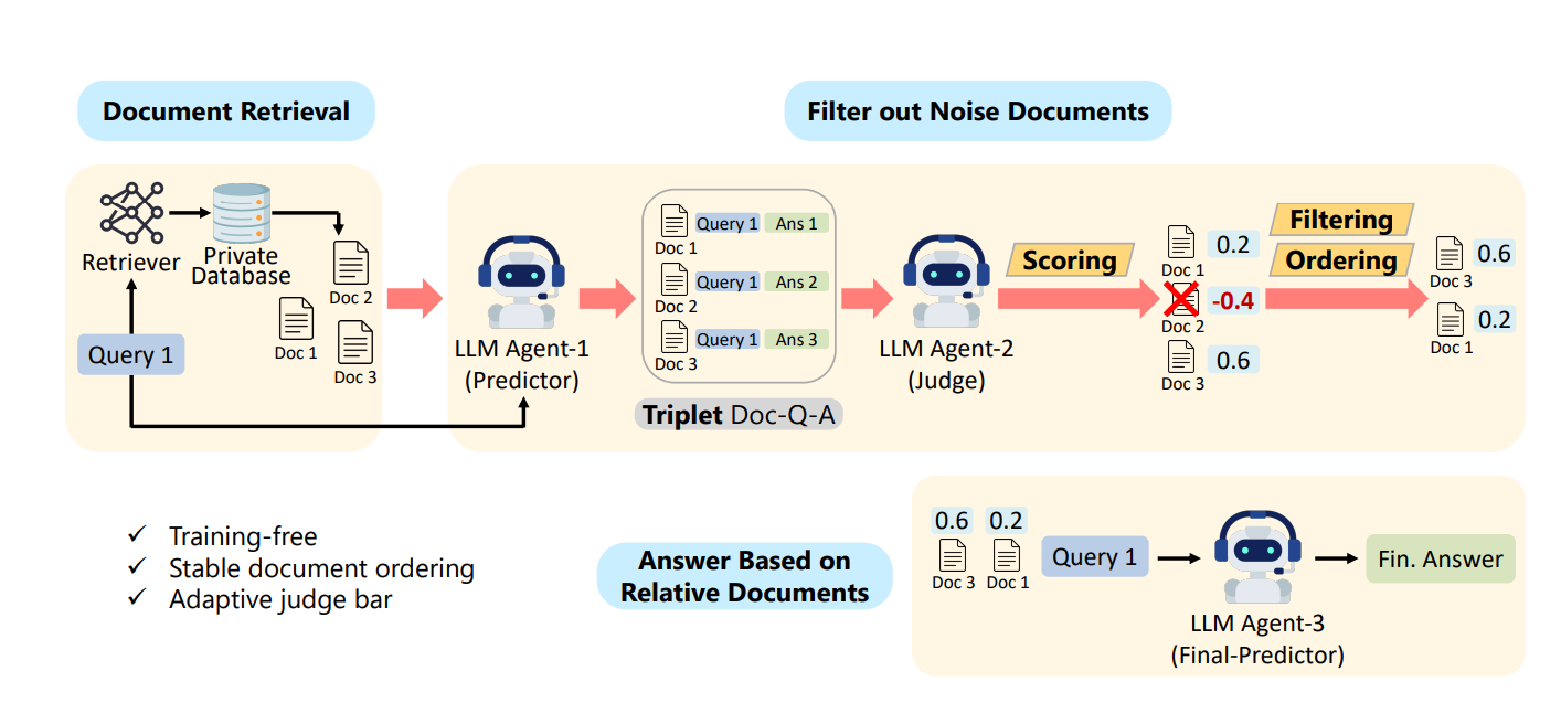 ֍ Multi Agent FIltering Retrieval-Augmented Generation (MAIN-RAG), a novel training-free framework designed to enhance the performance and reliability of RAG systems.