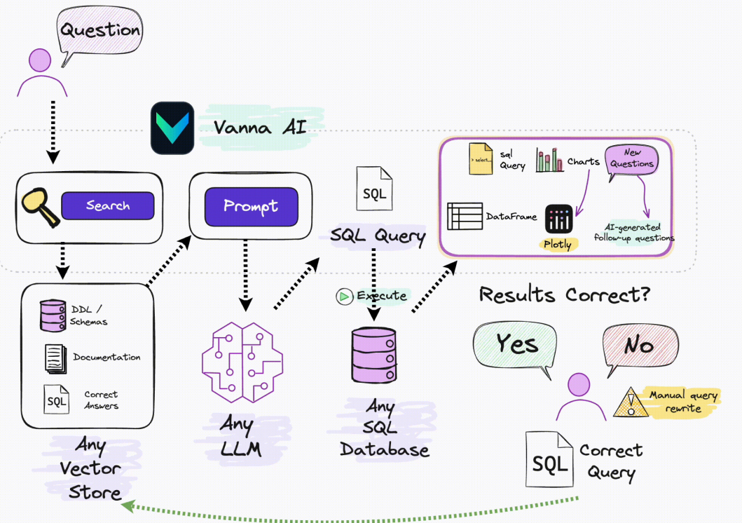 Vanna.ai is a Python-based tool designed to leverage retrieval augmentation for generating accurate SQL queries. This package utilizes large language models (LLMs) to seamlessly convert user inputs into precise SQL queries suitable for a variety of database applications.